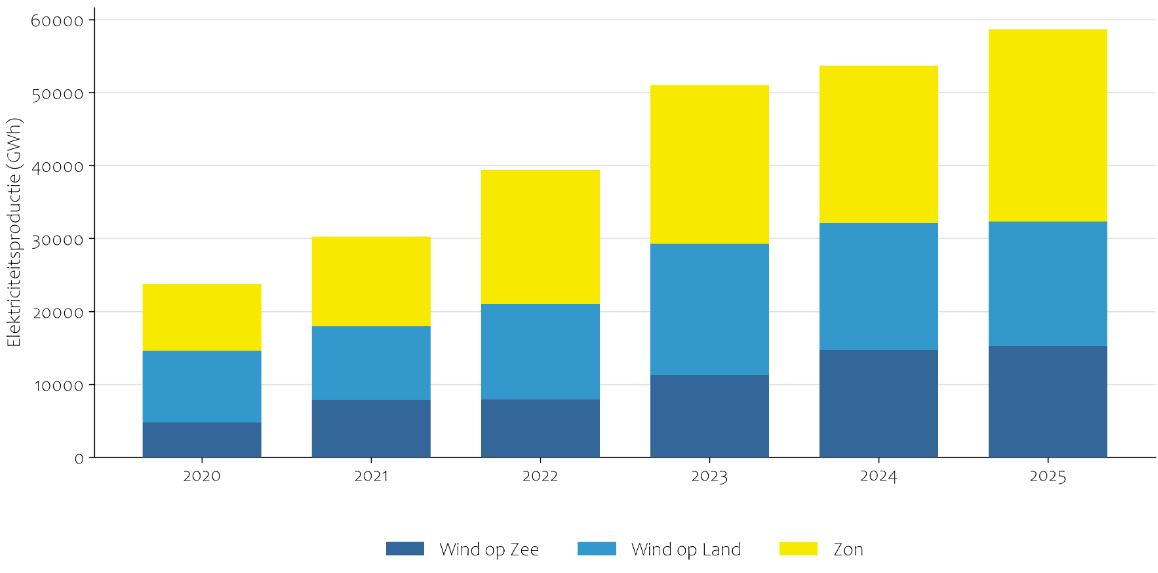 In 2025 werd er in totaal 128 terawattuur elektriciteit opgewekt, waarvan 52 procent hernieuwbaar opgewekt. Dat komt vooral door de opwek van stroom uit zonnepanelen en windmolens: die waren gezamenlijk goed voor de opwek van 48 procent van de totale elektriciteitsopwek.