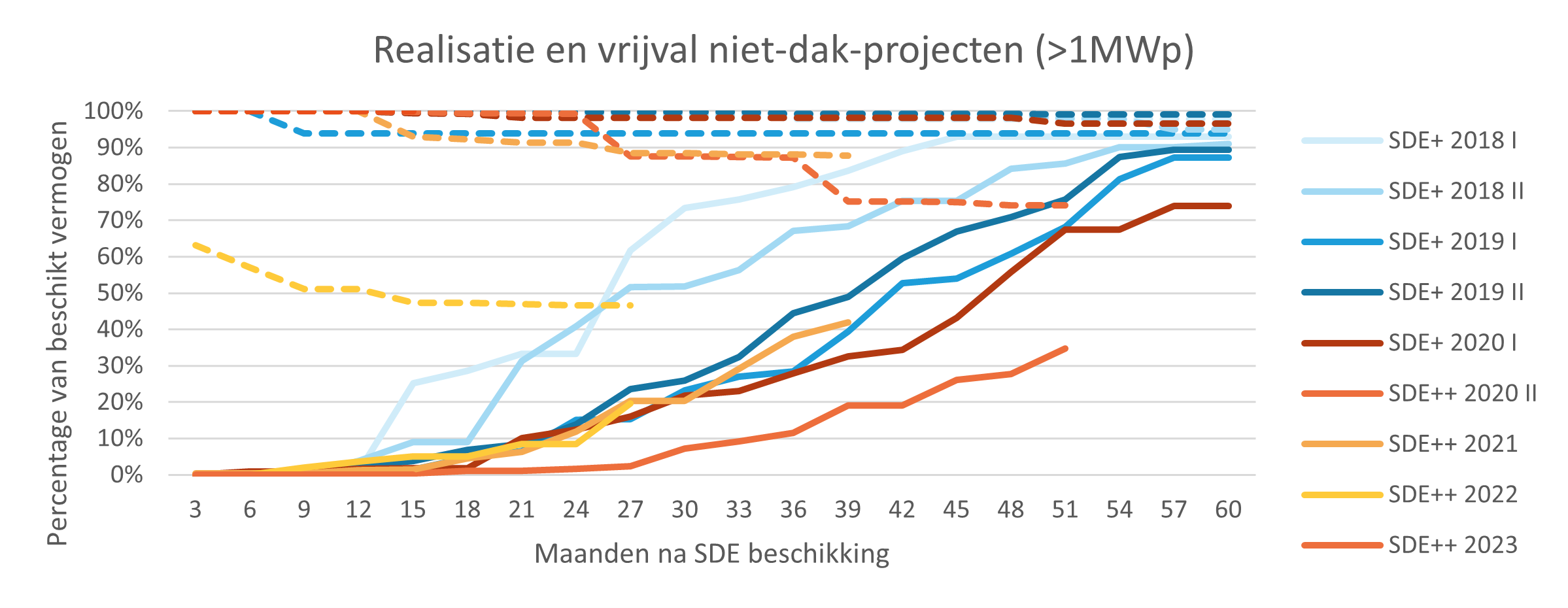 Ondanks dat bedrijven die een aanvraag doen voor SDE++ al in een redelijk gevorderd stadium zijn, komt het steeds vaker voor dat het project na de aanvraag toch niet rondkomt. Dit wordt ook vrijval van de projecten genoemd. Dutch New Energy Research deed onderzoek naar de vrijval de afgelopen jaren.